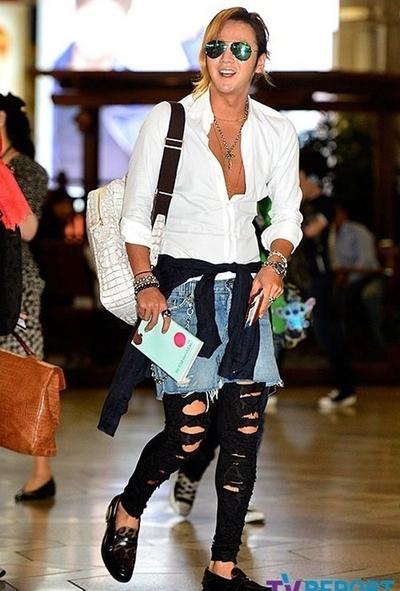 Ada batasan tipis antara gaya Harajuku dan tampil asal-asalan. Aktor dalam serial Beethoven Virus ini mengenakan kemeja putih, celana jeans robek-robek, dan legging dengan aksen deconstructed. Tak cukup sampai di situ, ia pun mengenakan beberapa kalung, gelang, serta menyampirkan cardigan di pinggang. Idenya boleh juga, tapi menggabungkan gaya resmi dengan gaya santai malah membuatnya terlihat aneh.